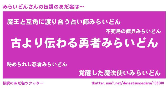 | ヒーロー風カッコイイあだ名 | 『ネオミライドン』『愛の使者みらいどん』 |