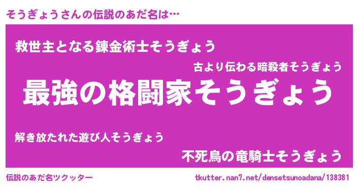 | 意味不明あだ名 | 『そうぎょうフォーエバー』 |