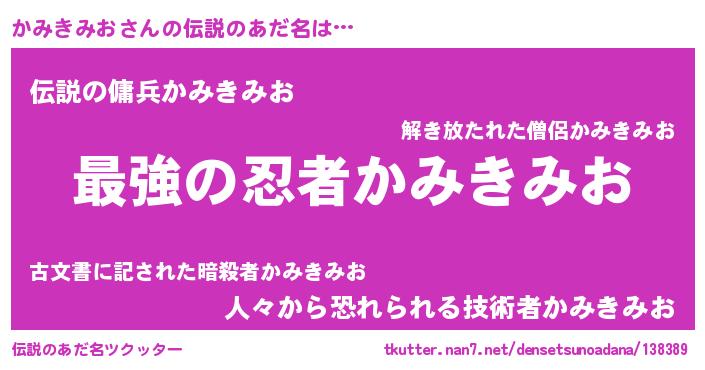 | 意味不明あだ名 | 『ニラ科かみきみお属』『自称かみきみお』 |
