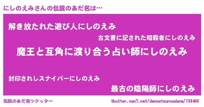 | 女子向けラノベタイトル風あだ名 | 『にしのえみ恋絵巻』 |