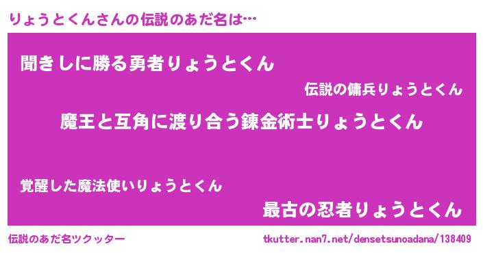 | ヒーロー風カッコイイあだ名 | 『愛の使者りょうとくん』『仮面リョダー』 |