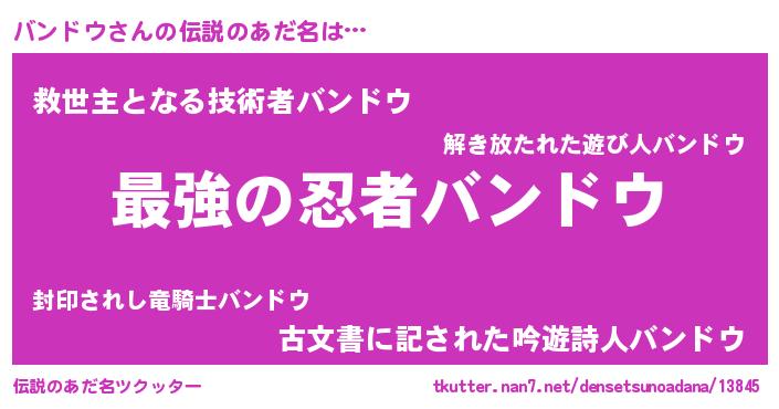 | ヒーロー風カッコイイあだ名 | 『ウルトラバンドウマン』『ネオバンドウ』 |