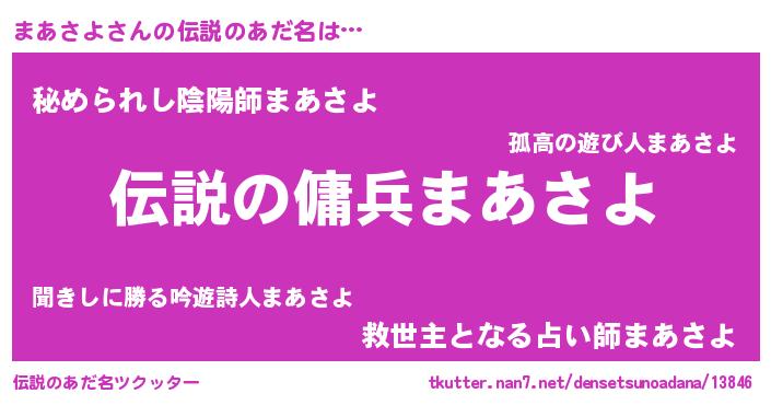 | 男性向けラノベタイトル風あだ名 | 『緋弾のマアサヨ』『まあさよの憂鬱』 |
