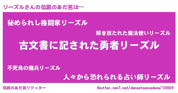 | 意味不明あだ名 | 『永久保存リーズル』 |