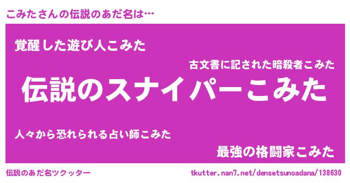 | 意味不明あだ名 | 『ペロリンこみた』『自称こみた』 |
