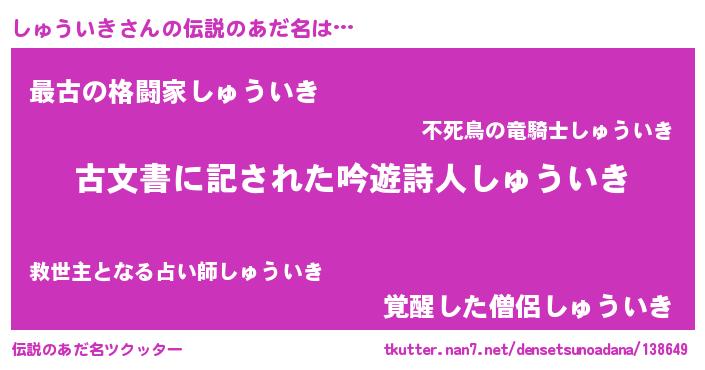| ヒーロー風カッコイイあだ名 | 『ネオシュウイキ』『仮面シュダー』 |