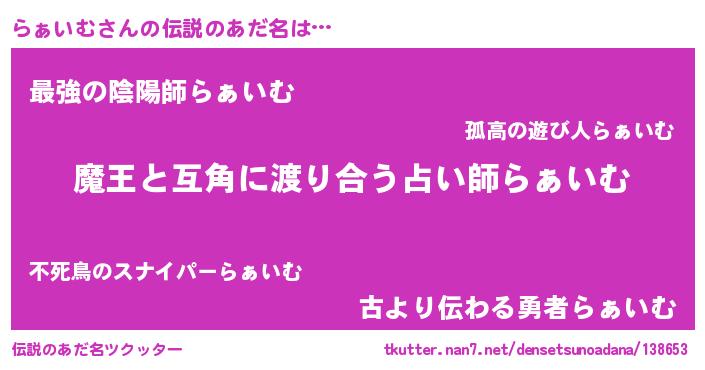 | ヘコむあだ名 | 『豆乳』『らぁいむ(震え声)』 |