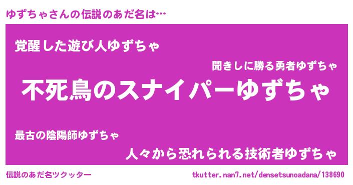 | ヒーロー風カッコイイあだ名 | 『スーパーユズチャ』『天弓騎士ユズ』 |