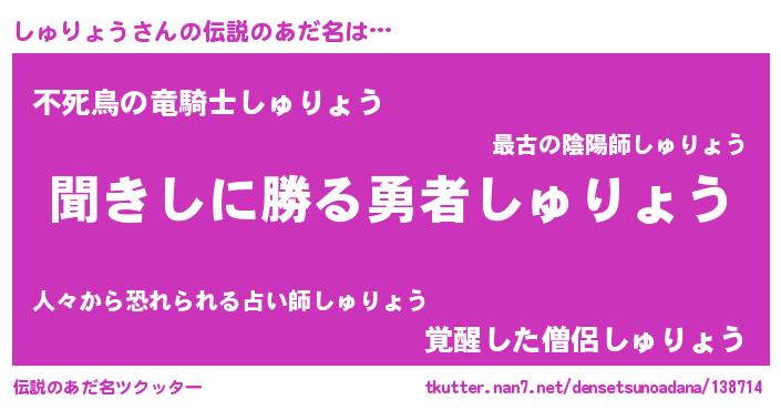 | 男性向けラノベタイトル風あだ名 | 『緋弾のシュリョウ』『しゅりょうの憂鬱』 |