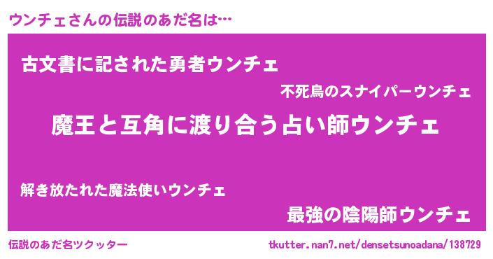| ヒーロー風カッコイイあだ名 | 『慈愛の使者ウンチェ』『ネオウンチェ』 |