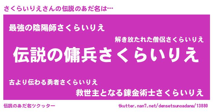 | 意味不明あだ名 | 『自称さくらいりえ』 |