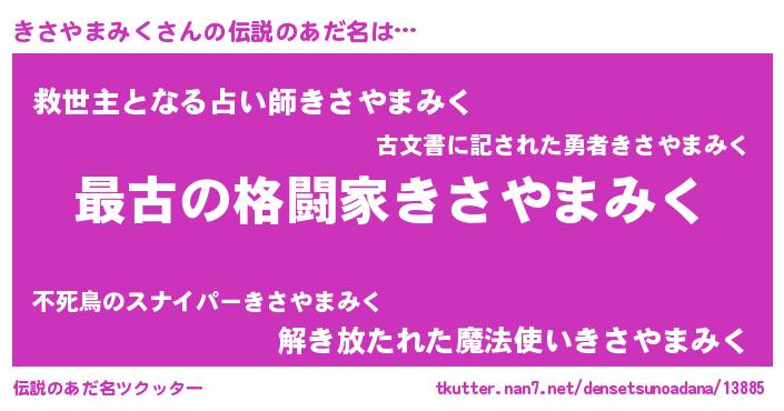| 男性向けラノベタイトル風あだ名 | 『転生したらきさやまみくだった件』 |