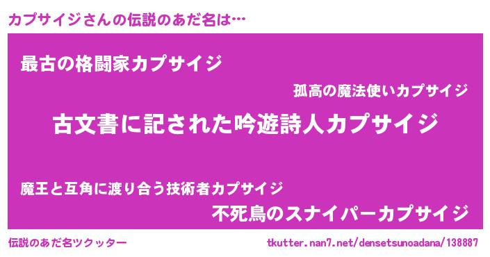 | 意味不明あだ名 | 『永久保存カプサイジ』 |