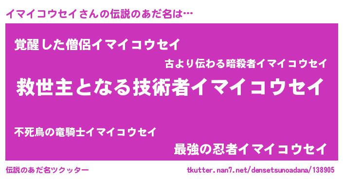 | ヒーロー風カッコイイあだ名 | 『最強戦士イマイコウセイ』 |