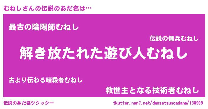 | 意味不明あだ名 | 『自称むねし』『住所不定無職むねし(50歳)』 |