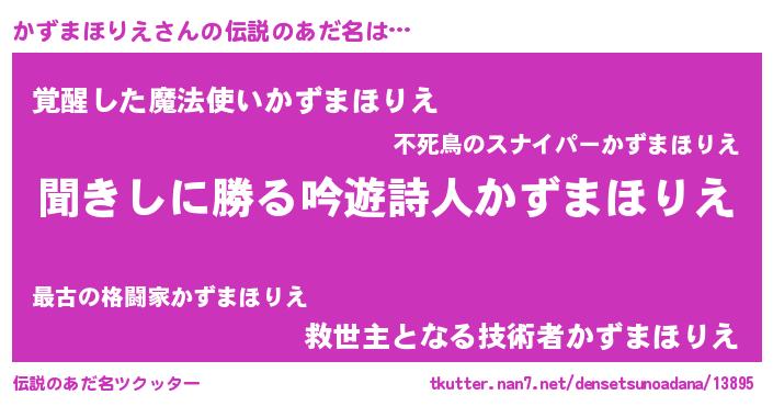 | 意味不明あだ名 | 『自称かずまほりえ』 |