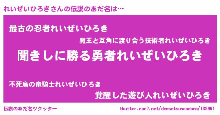 | 意味不明あだ名 | 『自称れいぜいひろき』 |