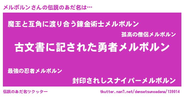 | ヘコむあだ名 | 『メルボルン(震え声)』『メルっふぃ~』 |