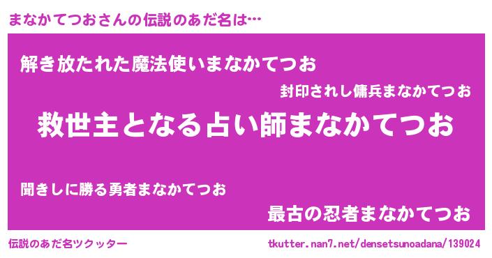 | ヒーロー風カッコイイあだ名 | 『天空の使者まなかてつお』 |