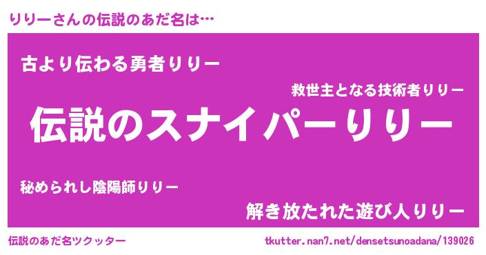 | 意味不明あだ名 | 『自称りりー』『ペロリンりりー』 |