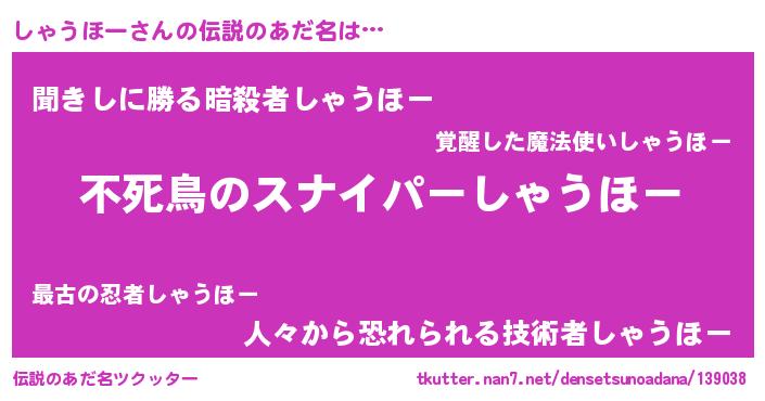 | ヒーロー風カッコイイあだ名 | 『ウルトラ戦士シャウホー』 |