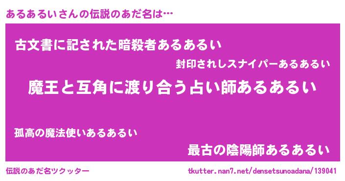 | ヒーロー風カッコイイあだ名 | 『愛の使者あるあるい』『ネオアルアルイ』 |