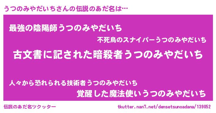| ヒーロー風カッコイイあだ名 | 『ネオウツノミヤダイチ』『仮面ウツダー』 |