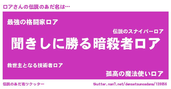 | ヘコむあだ名 | 『ロア(苦笑)』『レバニラ』『ロアを』 |