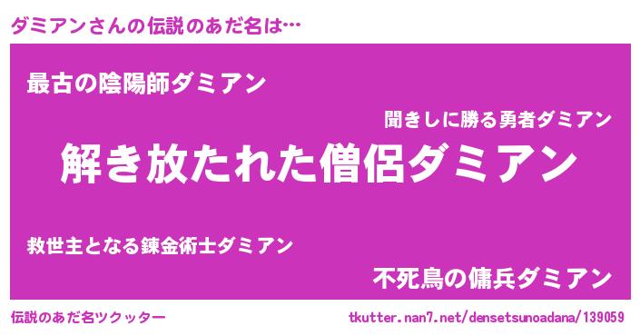 | 意味不明あだ名 | 『とにかく怪しいダミアン』 |