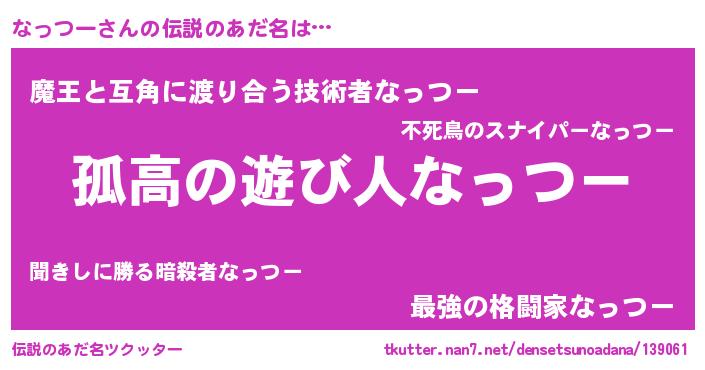 | 意味不明あだ名 | 『とにかく怪しいなっつー』 |