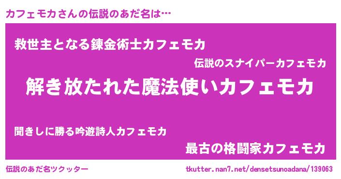 | ヒーロー風カッコイイあだ名 | 『魔戒騎士カフ』『天空の使者カフェモカ』 |