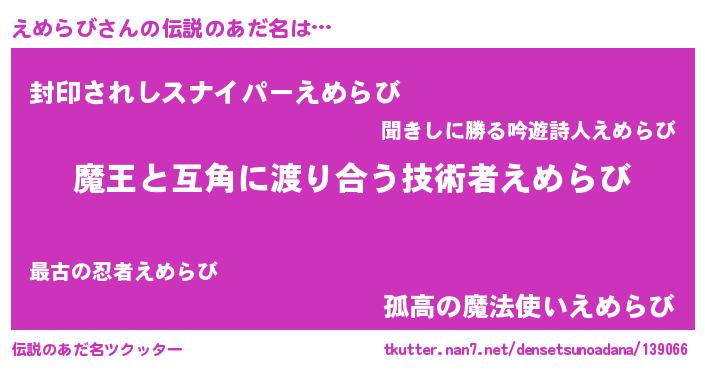 | ヒーロー風カッコイイあだ名 | 『愛の使者えめらび』『スーパーエメラビ』 |