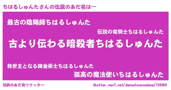 | ヒーロー風カッコイイあだ名 | 『ネオチハルシュンタ』『仮面チハダー』 |