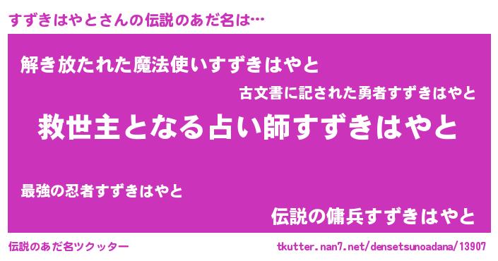 | 意味不明あだ名 | 『自称すずきはやと』 |