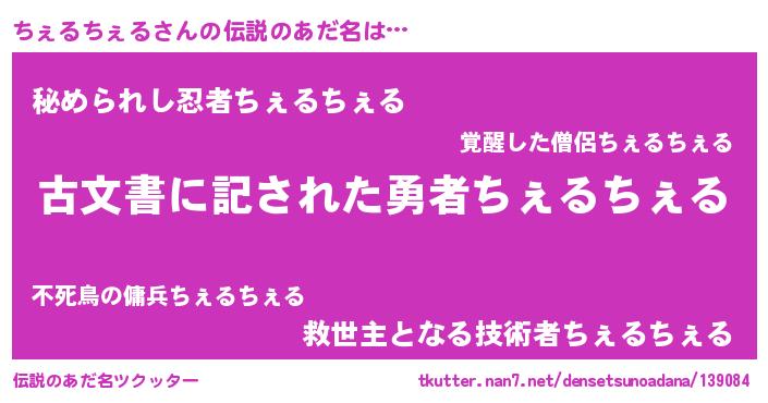 | 意味不明あだ名 | 『自称ちぇるちぇる』 |