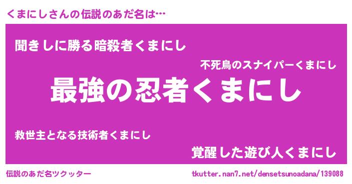 | ヒーロー風カッコイイあだ名 | 『最強戦士クマニシ』『ネオクマニシ』 |