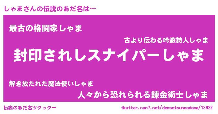 | ヒーロー風カッコイイあだ名 | 『スーパーシャマ』『ウルトラしゃまマン』 |