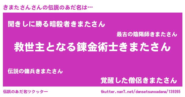 | 男性向けラノベタイトル風あだ名 | 『きまたさん~年齢イコール彼女いない歴の魔法使い~』 |