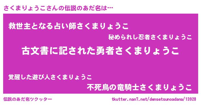 | ヘコむあだ名 | 『さくまりょうこ(震え声)』『さくっふぃ~』 |