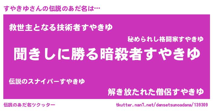 | ヒーロー風カッコイイあだ名 | 『超時空戦士スヤキユ』『仮面スヤダー』 |