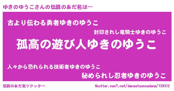 | 意味不明あだ名 | 『住所不定無職ゆきのゆうこ(89歳)』 |