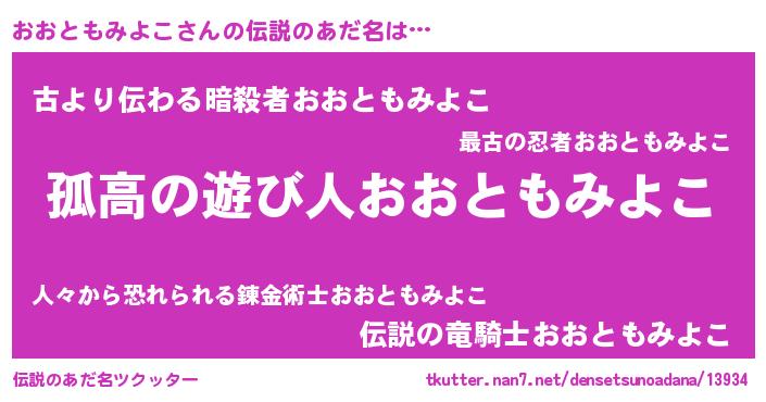 | ヒーロー風カッコイイあだ名 | 『黄金騎士オオ』『ネオオオトモミヨコ』 |