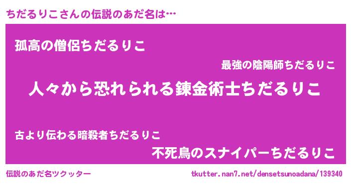 | 欧米人風あだ名 | 『ちだるりこ・ステッグマイヤー』 |