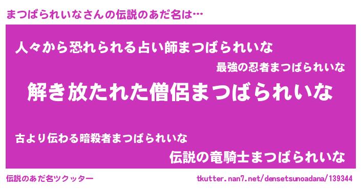| 男性向けラノベタイトル風あだ名 | 『冴えないまつばられいなの育てかた』 |