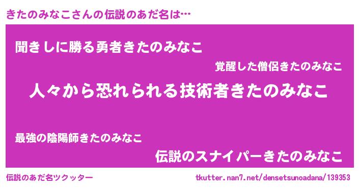 | ヒーロー風カッコイイあだ名 | 『仮面キタダー』『ネオキタノミナコ』 |
