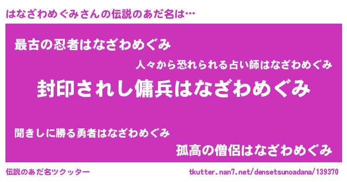 | ファンタジー風あだ名 | 『ハナフェル』『ゼハナトゥ』 |