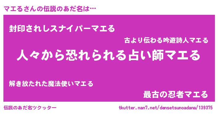 | ヒーロー風カッコイイあだ名 | 『正義の使者マエる』『最強戦士マエル』 |