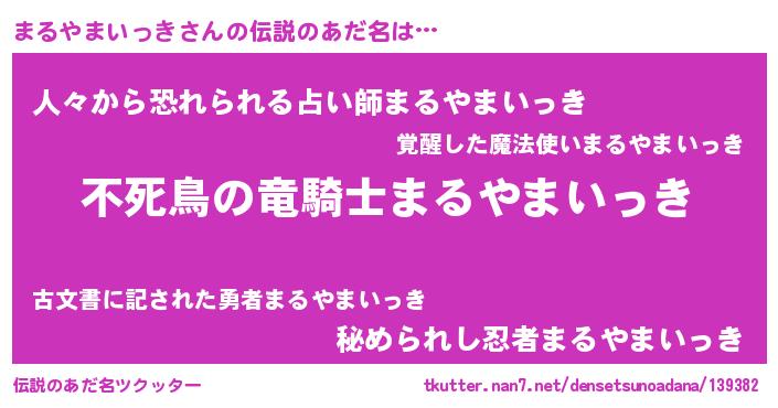 | 意味不明あだ名 | 『住所不定無職まるやまいっき(12歳)』 |