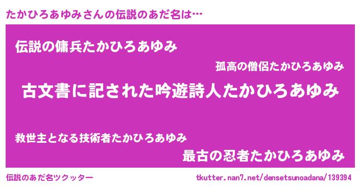 | 意味不明あだ名 | 『永久保存たかひろあゆみ』 |