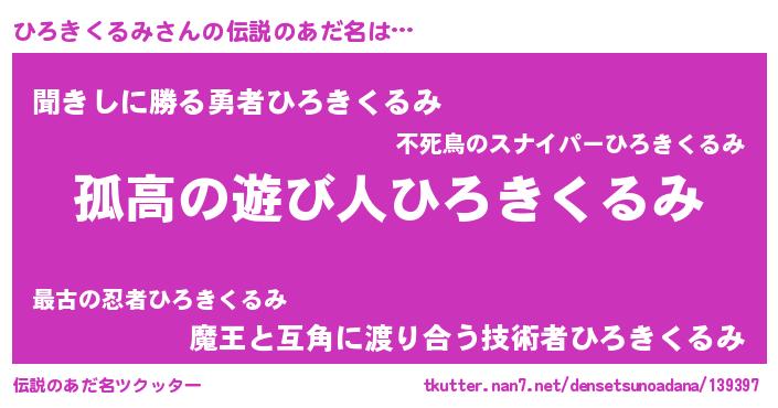 | 女子向けラノベタイトル風あだ名 | 『ひろきくるみは平凡を望む』 |